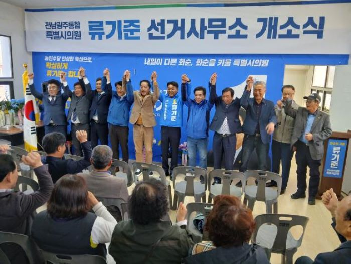 ·ù±âÁØ Àü³²µµÀÇ¿øÀÌ ´ÉÁÖÃàÇù 2Ãþ¿¡¼ °³¼Ò½ÄÀ» ¿°í, "¿À´Ã ÀÌÀÚ¸®´Â ȼøÀÇ ¹Ì·¡¸¦ ÇâÇØ ÇÔ²² Ãâ¹ßÇÏ´Â ÈûÂù Ãâ¹ßÁ¡ ÀÌ´Ù"¸é¼, º»°ÝÀûÀÎ Àç¼± Ȱµ¿¿¡ µ¹ÀÔÇß´Ù.