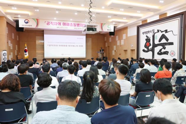 Áö³ 5¿ù 19ÀϺÎÅÍ ½ÃÇàÇÏ´Â ¡®°øÁ÷ÀÚÀÇ ÀÌÇØÃæµ¹ ¹æÁö¹ý¡¯¿¡ ´ëÇÑ ÀÌÇØ¸¦ µ½°í û·Å¹®È Á¤ÂøÀ» À§ÇØ Àü Á÷¿øÀ» ´ë»óÀ¸·Î Çß´Ù.