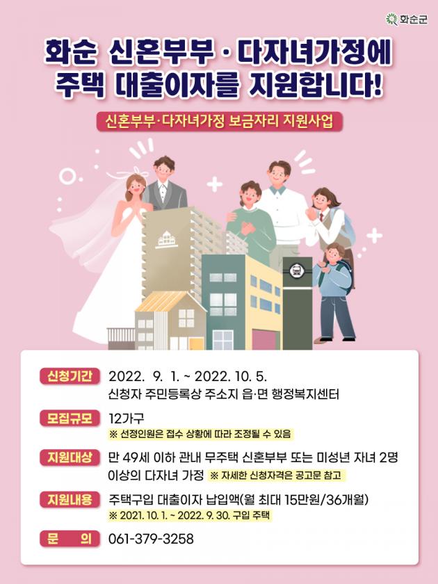 ȼø±º(±º¼ö ±¸º¹±Ô)ÀÌ ½ÅÈ¥ºÎºÎ¿Í ´ÙÀڳడÁ¤ÀÇ Áְźñ ºÎ´ã ¿ÏÈ¿Í Ãâ»ê․¾çÀ°Çϱâ ÁÁÀº ȯ°æ Á¶¼ºÀ» À§ÇØ Àü¶ó³²µµ¿Í ÇÔ²² ¡®2022³â ½ÅÈ¥ºÎºÎ․´ÙÀڳడÁ¤ º¸±ÝÀÚ¸® Áö¿ø»ç¾÷¡¯À» ÃßÁøÇÑ´Ù.