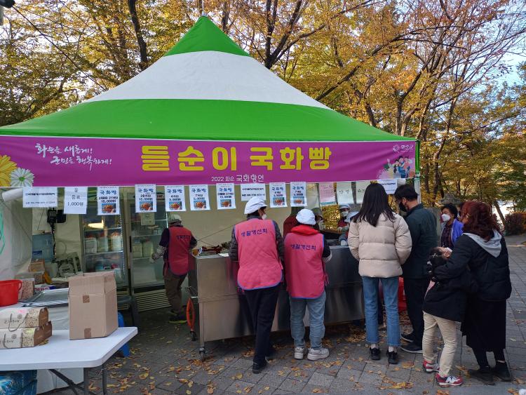 ¶ÇÇÑ, µé¼øÀÌ ±¹È»§Àº ȼø±ºÀ» ´ëÇ¥ÇÑ ±¹È¸¦ Çü»óÈÇÑ Ç®»§À¸·Î ȼø±º»ýȰ°³¼±È¸¿øµéÀÌ ÁÖÃàÀÌ µÇ¾î, ½Ò½ÒÇØ Á®°¡´Â °¡À» ±¹ÈÃàÁ¦ÀåÀ» ãÀº °ü¶÷°´µé¿¡°Ô µû¶æÇÑ °£½Ä°Å¸®·Î ÁÙÀ»¼¼ »ç¸Ô´Â Àαâ½ÄǰÀ̾ú´Ù.