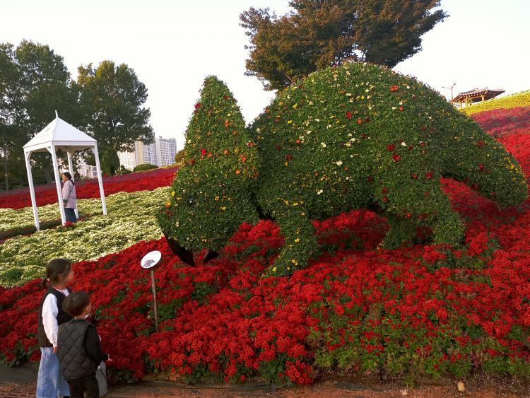 °¡À» ´ëÇ¥ ±¹È¿Í ÄÚ½º¸ð½º µîÀÌ ³Ñ½ÇµÇ´Â ³²»ê ±¹ÈÇ⿬Àå¿¡´Â °¡Á·´ÜÀ§ °ü¶÷°´µéÀÌ ÁÖ¸¦ ÀÌ·ç¾úÀ¸¸ç, ¿¬ÀÎ, Ä£±¸ ÇÒ °Í ¾øÀÌ ÀÔ¼®´ë, ÆØ¼ö, ÇÇÄ«Ãò, ¿±â±¸Àü¸Á´ë, ÇÏÆ®°ÔÀÌÆ® µî 39°³ÀÇ ±¹ÈÁ¶Çü¹° Æ÷ÅäÁ¸¿¡¼ »çÁøÀ» ÂïÀ¸¸ç Áñ°Å¿òÀ» ³ª´©¾ú´Ù. ƯÈ÷ À̹ø¿¡´Â ¹é¾Æ»êÇϴôٸ® Á¶Çü¹°À» ¸¸µé¾î ȼøÀÇ ¸í¼ÒÀÎ ¹é¾Æ»êÇϴôٸ®¸¦ È«º¸ÇÏ¿© ´«±æÀ» ²ø¾ú´Ù.