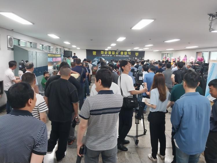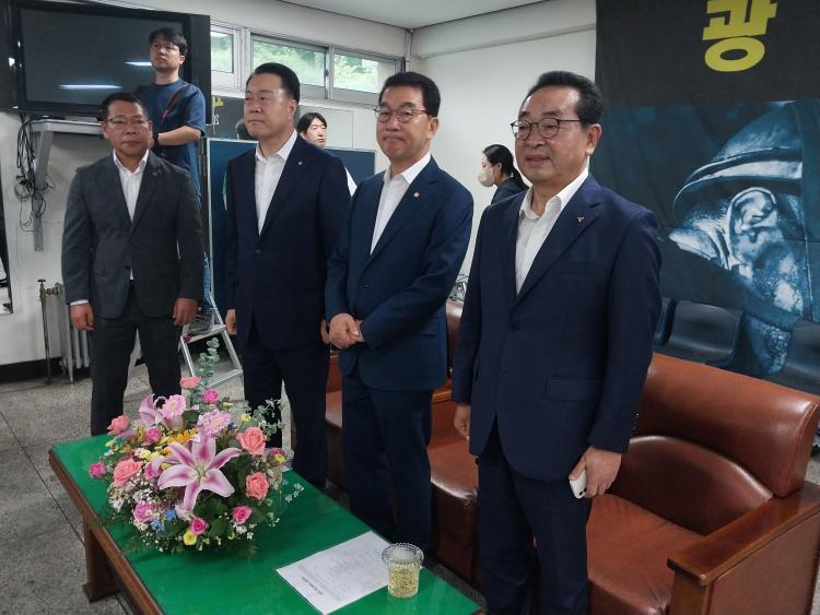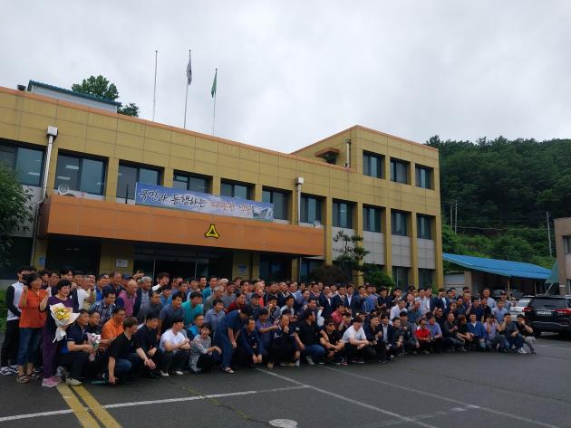 ±¤ºÎµéÀ» ´ëÇ¥ÇÏ¿©, ±èº´Èñ Á÷¿øÀÌ , "»ý»ç¸¦ ³Ñ³ªµå´Â ÁöÇϸ·Àå¿¡¼ °ËÀº äźÀ» µÑ·¯¾²°íµµ ¿ôÀ½À» ÀÒÁö ¾Ê¾Ò´ø µ¿·áµé°ú Á¤µç Á÷ÀåÀ» ¶°³ª¾ß ÇÏ´Â ¾Æ½¬¿î ½ÉÁ¤"À» ±×´ë·Î º¸¿©ÁÖ´Â °íº°»ç¸¦ ¹ßÇ¥ÇÏ¸ç ¸ñÀÌ ¸Þ¿© ¿ï¸ÔÀÌÀÚ, ±× ÀÚ¸®¿¡ Âü¼®ÇÑ È¼ø±¤¾÷¼Ò ÀÓÁ÷¿øµé°ú °¡Á·µé ¹× Âü¼®ÀÚµéÀÌ ¸ðµÎ ´«¹°À» ±Û½éÀÌ¸é¼ ¶ß°Å¿î µ¿Áö¾Ö°¡ ²ú¾î ¿Ã¶ú´Ù.