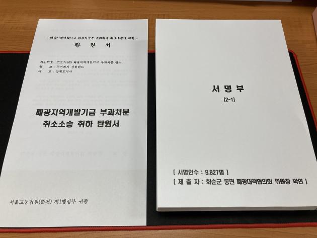 ȼø±º µ¿¸é Æó±¤´ëÃ¥ÇùÀÇȸ(À§¿øÀå ¹Ú ¿¬)°¡ Æó±¤±â±Ý ȯ±ÞÀ» Ãë¼ÒÇÏ°í ´ëü »ê¾÷ À°¼ºÀ» À§ÇØ 8¿ù 11ÀÏ ÃáõÁö¹ý ÀçÆÇºÎ¿¡ °¿ø·£µå°¡ Á¦±âÇÑ Æó±¤Áö¿ª°³¹ß±â±Ý °ú¼Ò¡¼öºÐ ºÎ°úóºÐ Ãë¼Ò ¼Ò¼Û¿¡ ´ëÇÑ Åº¿ø¼¿Í ±º¹Î ¼¸íºÎ¸¦ Á¦ÃâÇß´Ù.