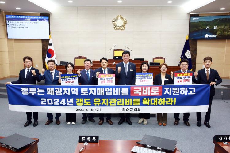 ȼøÆó±¤Æ¯º°´ëÃ¥À§¿øÈ¸(À§¿øÀå ·ù¿µ±æ)´Â 15ÀÏ ,±¹°¡ÀÇ Æó±¤ ÅäÁö¸ÅÀÔºñ¸¦ Áö¹æºñ·Î ´ëüÇ϶ó´Â ¹«¼ºÀÇÇÑ ¹ßÇ¥¿¡, ¡°Á¤ºÎ´Â ȼø±¤¾÷¼Ò Æó±¤ ÅäÁö¸ÅÀÔºñ¸¦ ±¹ºñ·Î Áö±ÞÇ϶ó!¡±´Â °Í°ú, ¡°°»µµ ¾ÈÀü°ü¸®¸¦ À§ÇÑ À¯Áö°ü¸®ºñµµ ¿¹»êÀ» ¼¼¿ö ³»³â¿¡ ¹Ý¿µÇØ ÁÖ¶ó¡±´Â °áÀǹ®À» äÅÃÇØ °ø½ÄÀûÀ¸·Î °·ÂÇÏ°Ô Ã˱¸ÇÏ°í ³ª¼¹´Ù.