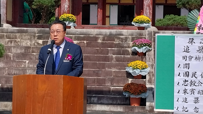 ¿À´ÃÀÌ ÀÖ±â±îÁö °í»ýÇϽŠÃá°î °µ¿¿ø ¹Ú»ç¸¦ Á¤ÁßÈ÷ ¼Ò°³Çϸç, Á¶ÁØÇö ÃæÀǰøÃÖ°æÈ¸¼±»ýÈ£±¹Á¤½Å¼±¾çȸÀåÀº, "ÃÖ°æÈ¸ ¼±»ý°ú ³í°³ ºÎÀÎÀÌ ¸ö¼Ò ½ÇõÇϽŠ´ö¸ñÀº Ç×»ó ¾î·Æ°í Èûµé¶§ ¹ÎÃʵéÀÌ ³ª¶ó¸¦ ±¸ÇÑ´Ù´Â ±³ÈÆÀ» ³²±â½Å ºÐµé ÀÔ´Ï´Ù. ¿ì¸®°íÀåÀ» ÃæÀÇ °íÀåÀ¸·Î µå³ô°Ô ÇÏ½Å ÃæÀ̰øÀÇ ¾Ö±¹½É°ú È£±¹ÃæÀýÀÇ °íÀåÀÇ ÀÚ±à½ÉÀ» °¡Áö°Ô ÇÑ´Ù"¸é¼ »ÑµíÇÔÀ» ÀüÇß´Ù.