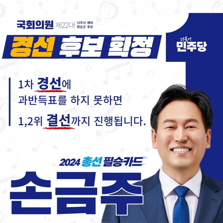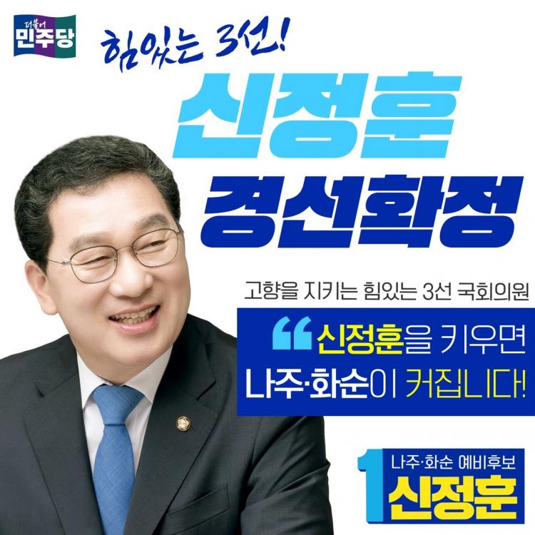 ³ªÁÖ¡¤È­¼ø ¼±°Å±¸´Â ½ÅÁ¤ÈÆ Çö ÀÇ¿ø°ú ¼Õ±ÝÁÖ Àü ÀÇ¿ø, ±¸Ãæ°ï Àü È­¼ø±º¼ö °£ 3ÀÎ °æ¼±À¸·Î °áÁ¤µÆ´Ù. ½Å ÀÇ¿ø°ú ¼Õ Àü ÀÇ¿øÀº ÃѼ± ¸®ÅϸÅÄ¡´Ù. °ú¹Ý¼ö µæÇ¥ÀÚ°¡ ¾øÀ» °æ¿ì °á¼± ÅõÇ¥¸¦ Ä¡¸£±â·Î ÇØ ÇǸ»¸®´Â °æ¼±ÀüÀÌ ¿¹»óµÈ´Ù.