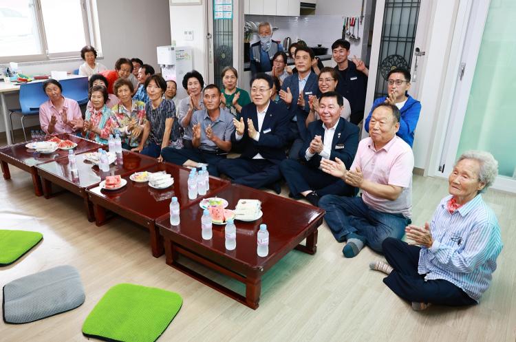 ¿À ÀÇÀåµµ, "¿À´ÃÀº Áö¿ª¹Îµé°ú ±Ù°Å¸®¿¡¼ ¸¸³ª´Â ÀÚ¸®·Î¼, "¸Õ°Å¸®¿¡ Á÷Á¢ ±º¼ö´ÔÀÌ ¿À½Ã±â Èûµå´Ï ÇÏ½Ç ¸»¾¸ ÀÖÀ¸½Ã¸é ¾î·Á¿ö ¸»°í Çã½ÉźȸÇÏ°Ô À̾߱â ÇϽöó"°í ¸»Çϸé¼, "°Ç°À» ÀÒÀ¸¸é ¸ðµç°ÍÀ» ÀÒ´Â °ÍÀÌ´Ï °Ç°ÇÏ°Ô ÇູÇÏ°Ô »ç½Ã¶ó"°í ¾î¸£½Åµé²² ´çºÎÇß´Ù.