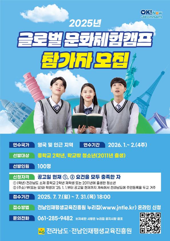 Àü³² û¼Ò³â ´ë»ó, ¡®2025³â ±Û·Î¹ú ¹®ÈüÇè Ä·ÇÁ¡¯ Âü°¡ÀÚ ¸ðÁý